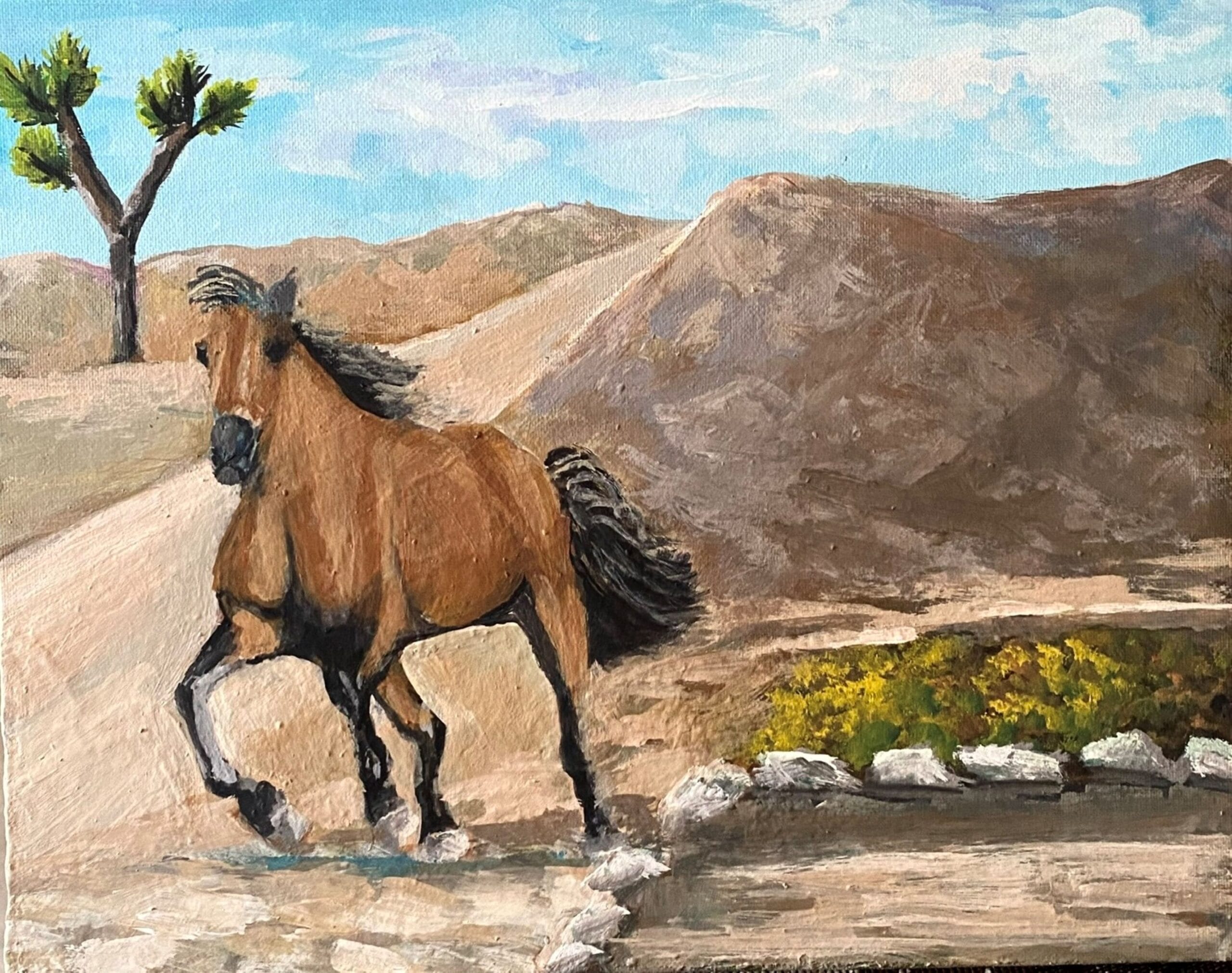 Dashing through the desert, this artwork makes you want to almost get out of the way. You can almost feel the speed and furry of his need to run.