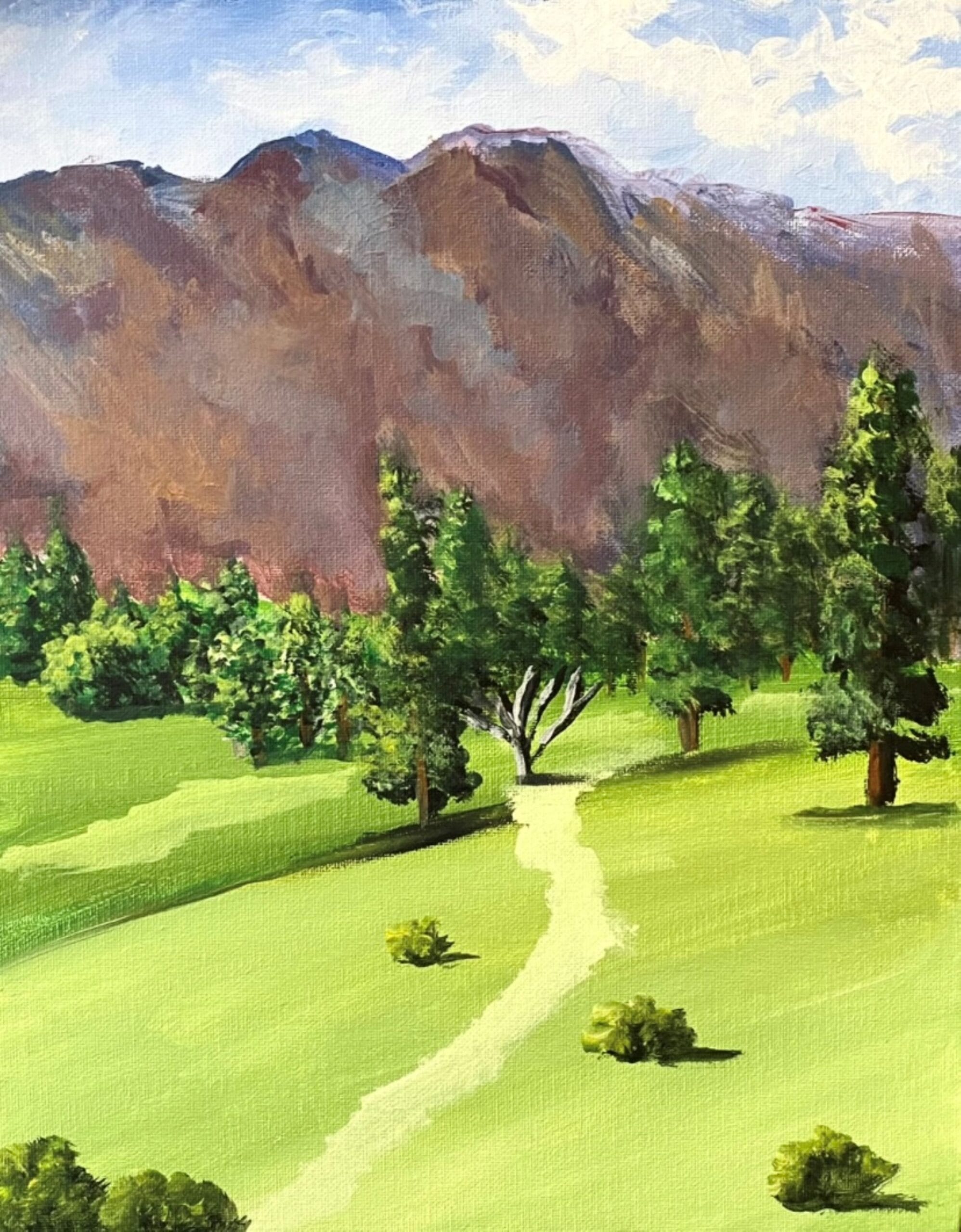 You can almost picture that golf cart going along that path with the Santa Rosa Mountains in the background.  The greenery of the ground cover and the trees  in the background begs you to scream,” FORE”