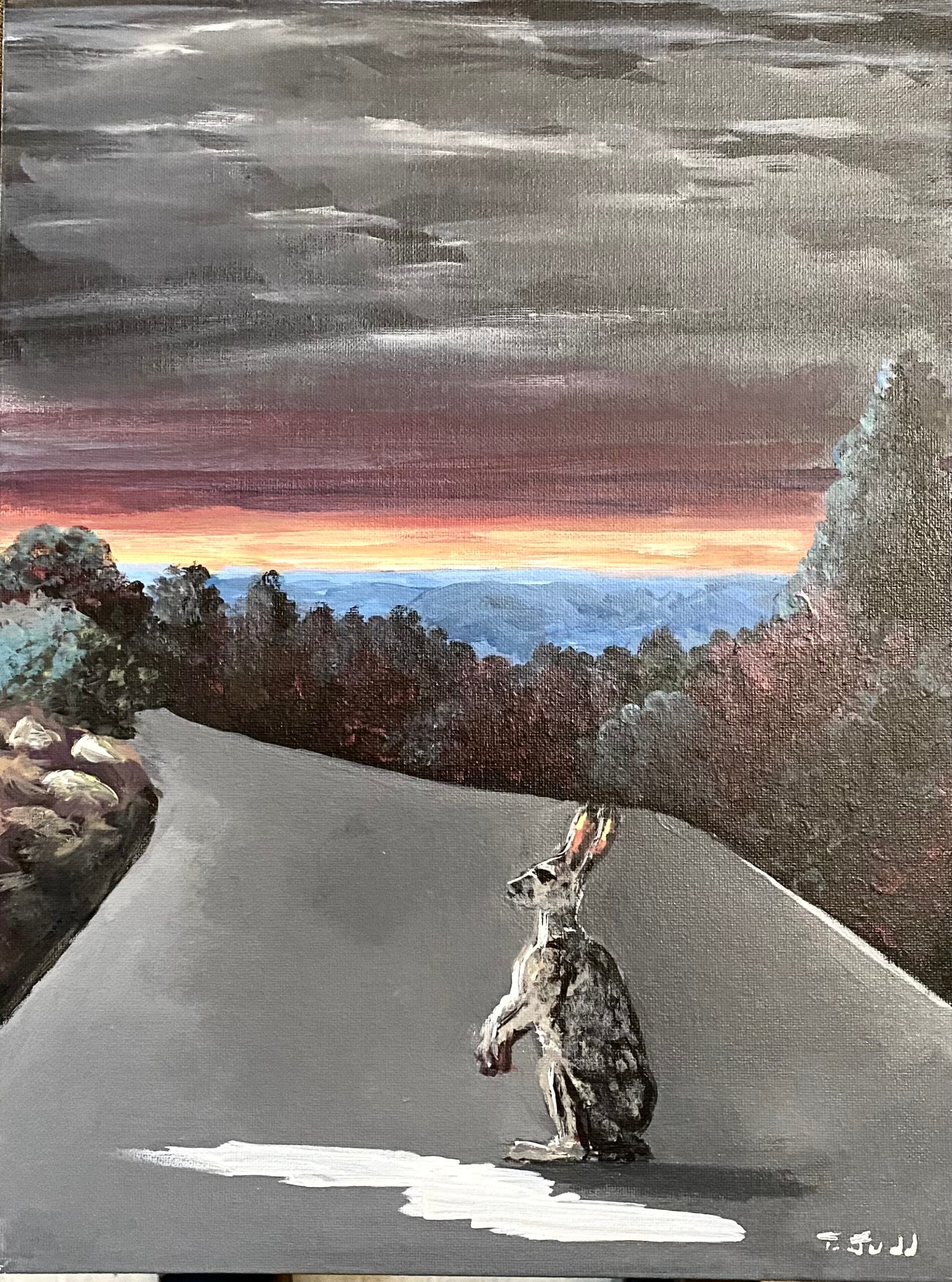Twilight colors being out every sweet creature. Jack Rabbits stand tall and confident even in the middle of the road.