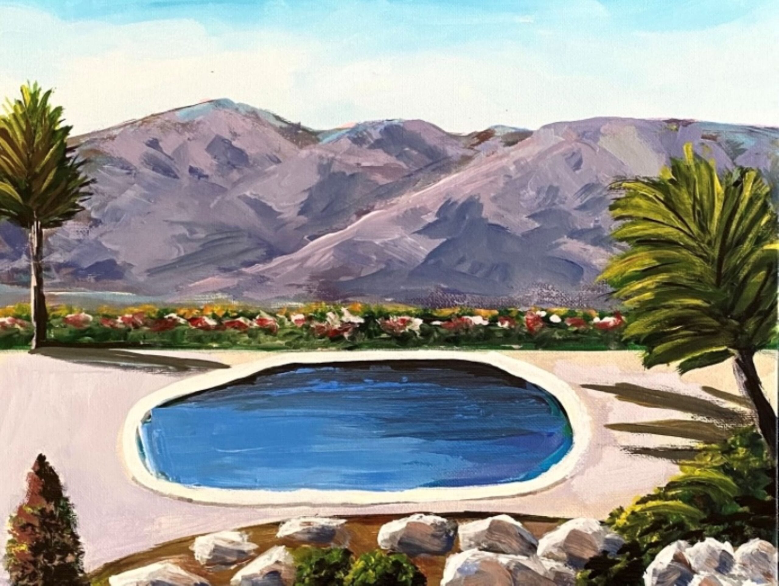 A day of summer fun alongside of the pool, with the scenic background of the Palm Spring Mountains. The pool looks inviting as does the vacation itself…..doing it again next summer.