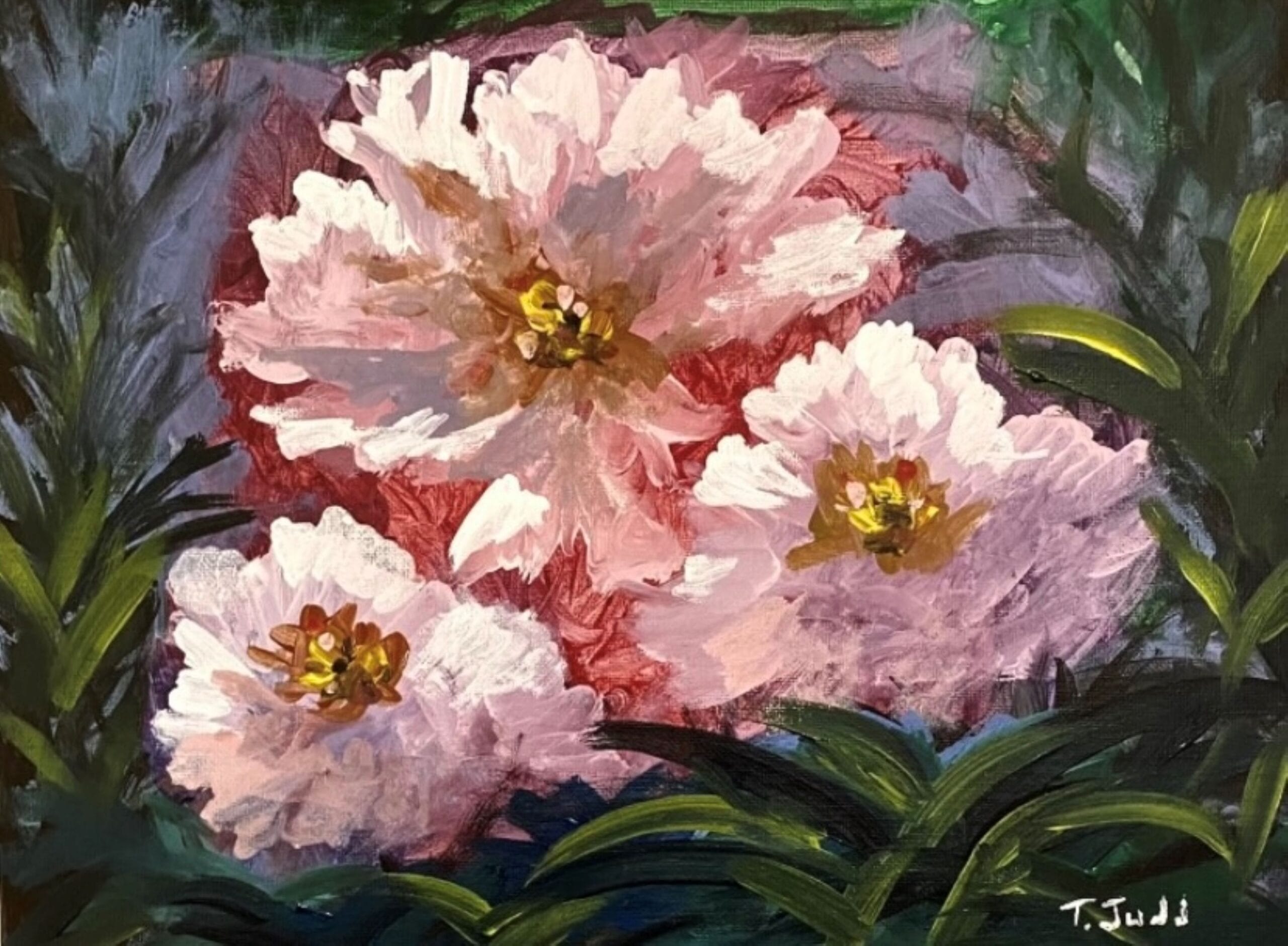 An odd number is pleasing to the eye and this hold true with this beautiful floral painting.  There is a softness that is so amazing to look at and pleasing to the eye.
