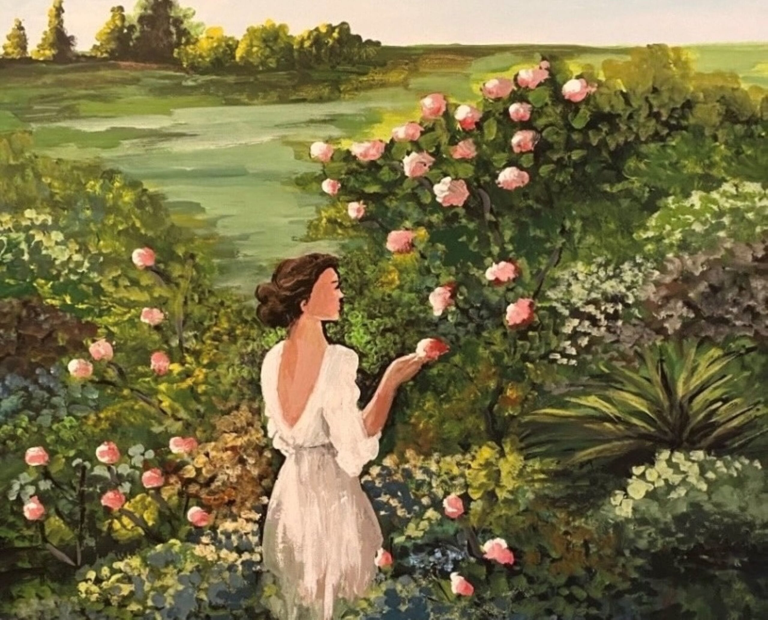 Every womans dream to be that beautiful woman picking flowers in a rose garden. Some images are just so pleasing to the eye; you can almost smell the rose garden.