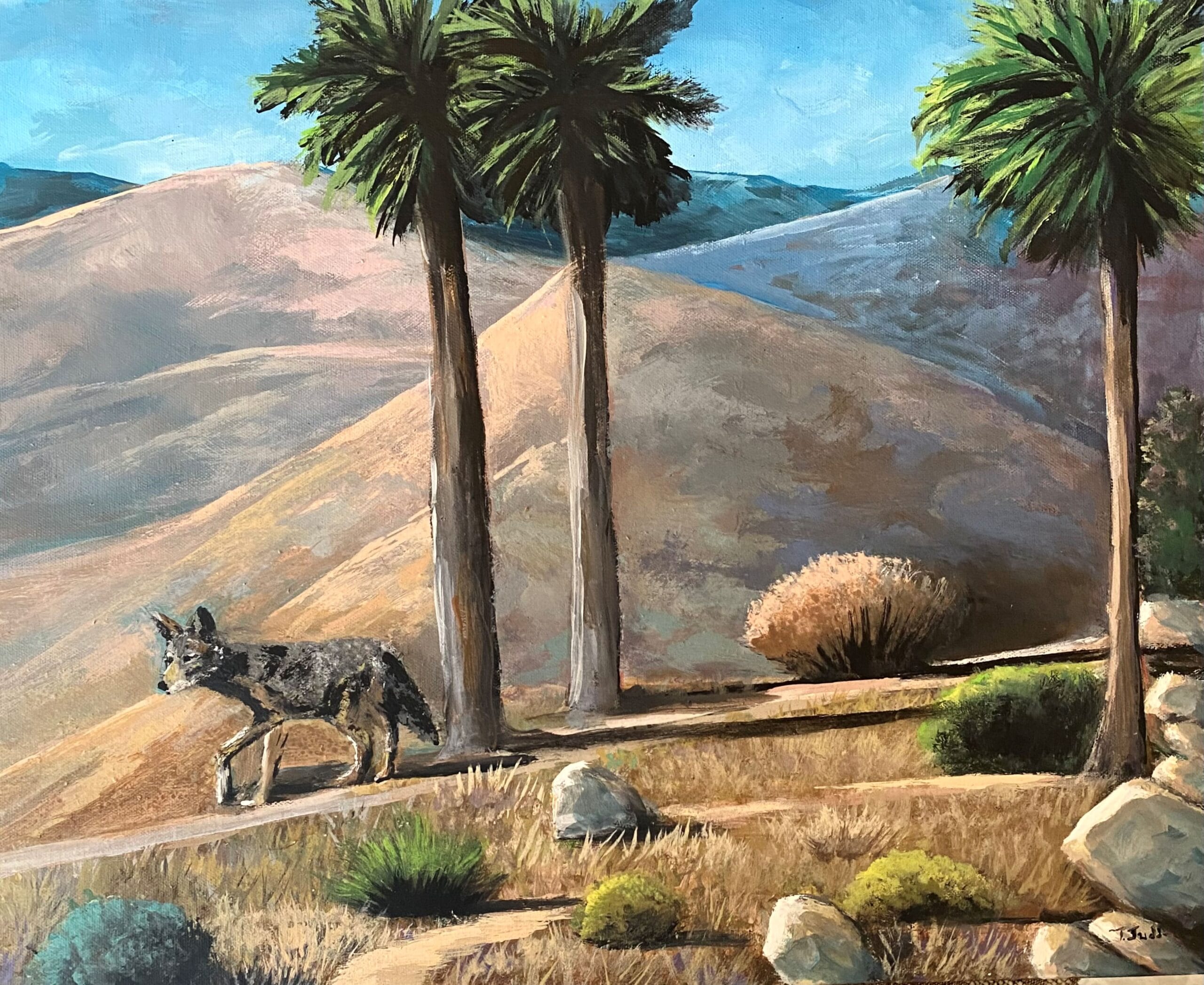 This sweet boy, on a 20 x16 canvas, is combing the desert floor for his much-needed food. Do not be fooled by his shy nature for he can be wild and sneaky and yet we are all mesmerized by his devilish ways.