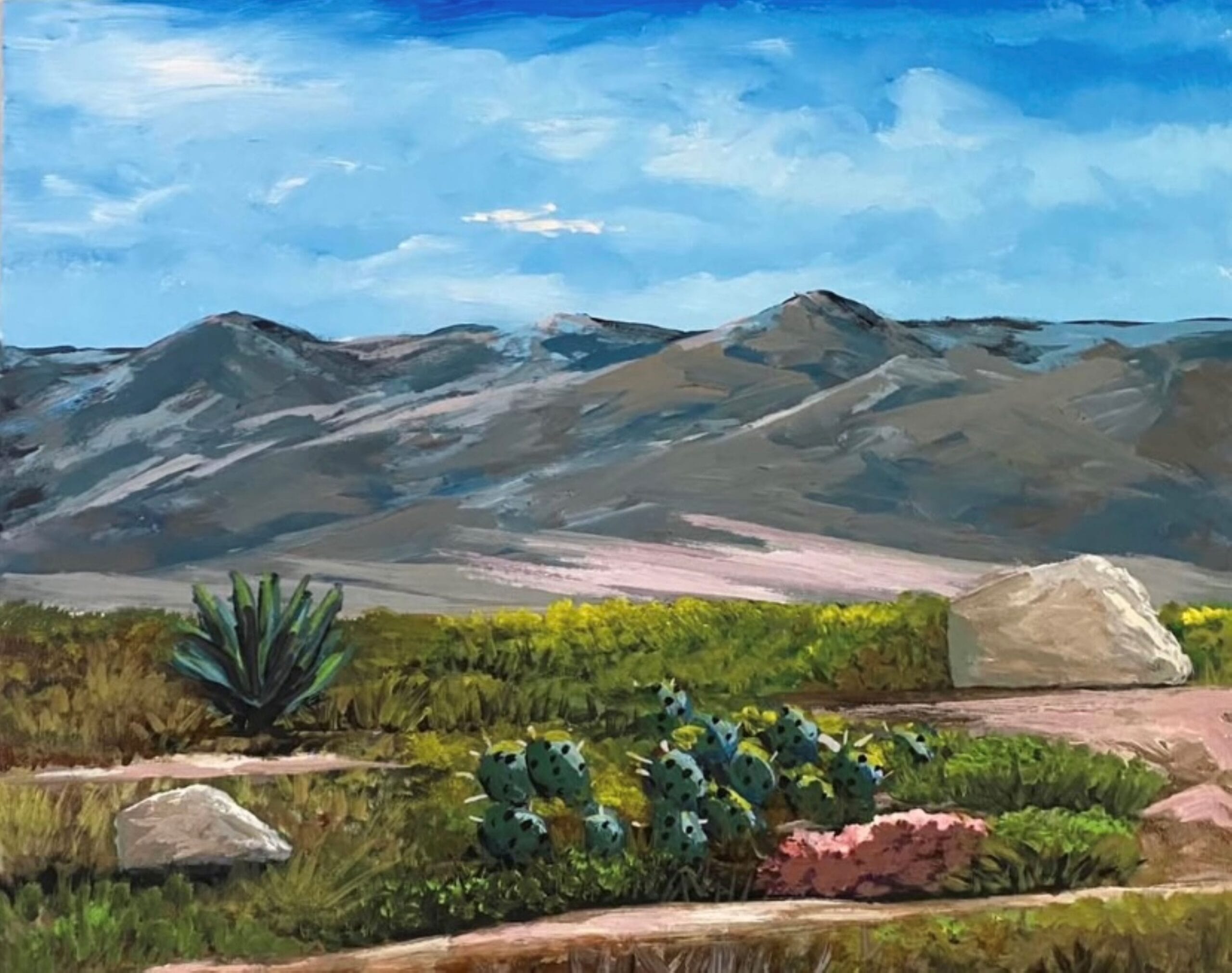 If this is your normal scenery in the desert…. please take me there. A blue sky, great mountain range and your cactus complete this painting.